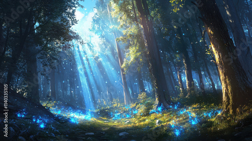 Sunrise rays illuminating a dense forest nature photography serene environment captivating viewpoint