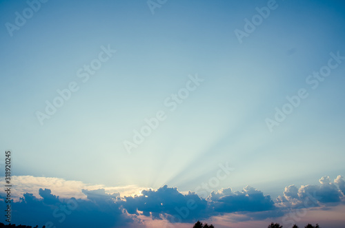 Sunset / sunrise with clouds, light rays and other atmospheric effect