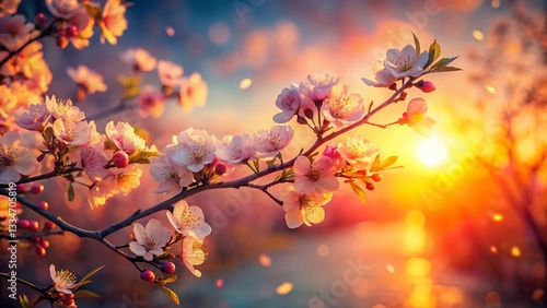 Sunset Blossoms: Double Exposure Rule of Thirds Photography