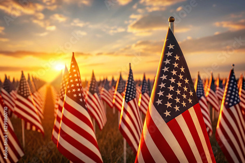 Sunset Field of American Flags