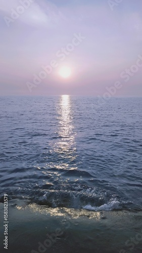 Sunset over a Calm Purple Sea Horizon