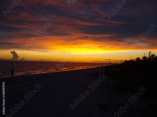 Sunset over Gulf of Mexico on Sanibel Island beach