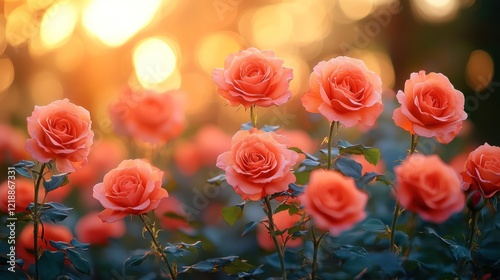 Sunset Peach Roses Garden Bloom Background