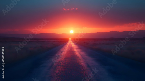 Sunset Road, Vibrant Colors, Desert Landscape Illustration