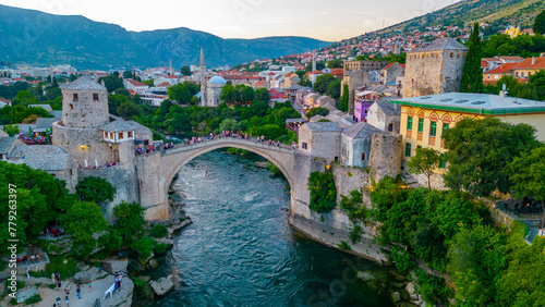 Sunset view of the old Mostar bridge in Bosnia and Herzegovina