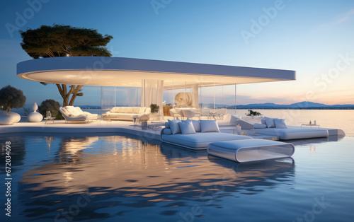 Super luxurious house with swimming pool and terrace in modern design.