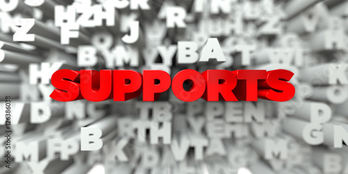 SUPPORTS - Red text on typography background - 3D rendered royalty free stock image. This image can be used for an online website banner ad or a print postcard.