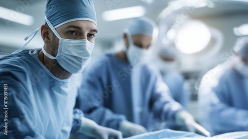 Surgeons in a modern operating room performing a complex surgery with focus and precision.