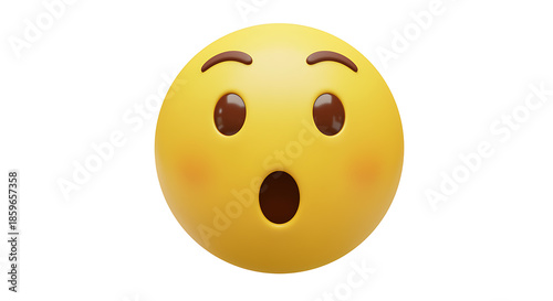 Surprised yellow emoji face with open mouth expressing shock and amazement on white background