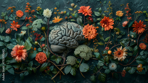 surreal brain with growing flower, growth mindset concept