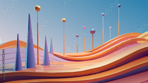 Surreal Desert Landscape with Vibrant Colors and Abstract Shapes