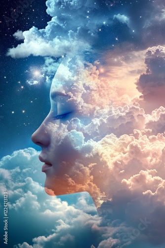 Surreal Dreamscape of a Woman's Face Merging with Ethereal Clouds