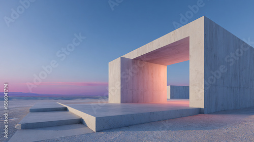 Surreal Modern White Arch Structure on Minimal Desert Plain