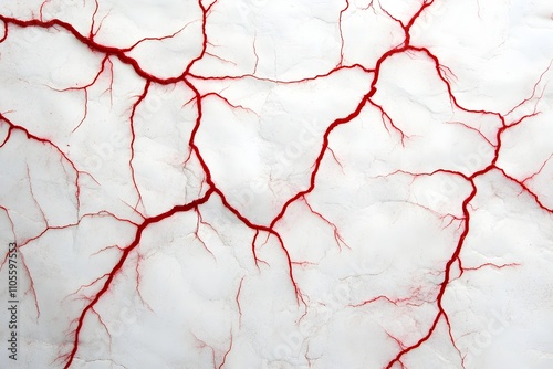 Surreal Radioactive Red Texture with Branching Lines Across White Background
