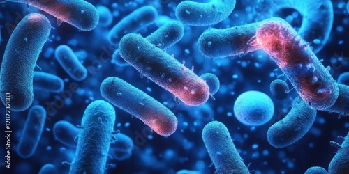 Surreal Representation of Bacteria in Microscopic View Ethereal Blue Light Watercolor Probiotic