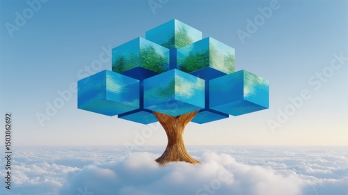 Surreal Tree with Cube Leaves in the Sky