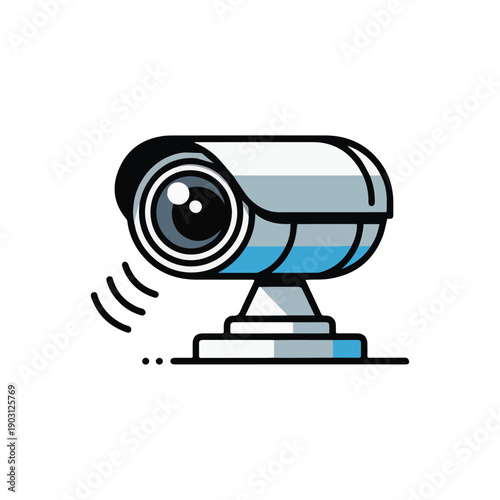 Surveillance security camera flat vector icon illustration for sticker, logo, book, t-shirt design and more