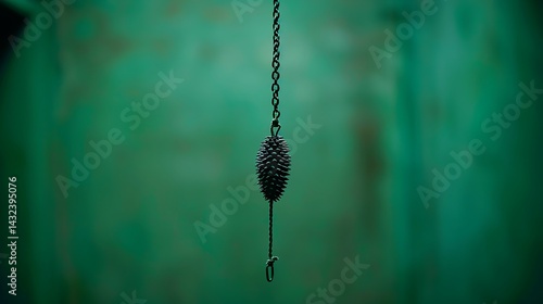 Suspended enigma: A metal sphere hangs against a backdrop of verdant serenity