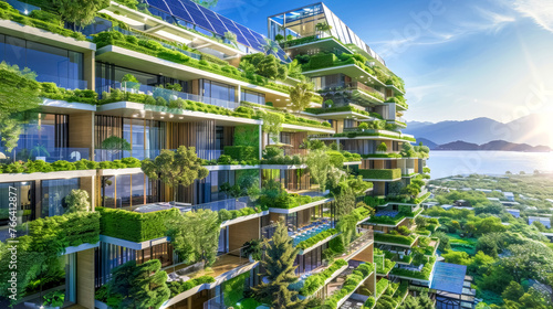 Sustainable eco-friendly building with green terraces