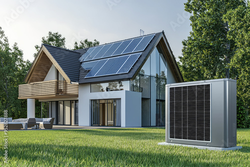 Sustainable Living: A Modern Home with Solar Panels and Heat Pump