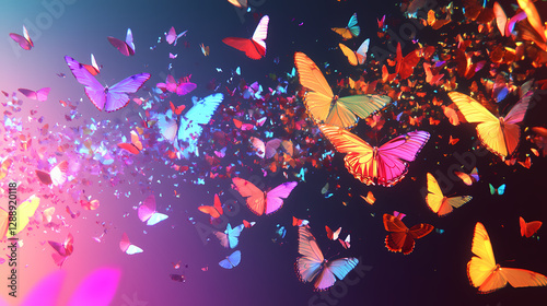 Swarm of colorful butterflies taking flight. generative ai. Iridescent Butterfly Swarm. Illustration