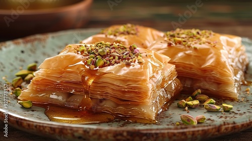 Sweet and Nutty Baklava Drizzled with Honey and Pistachios