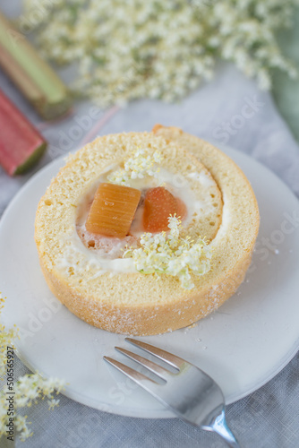 sweet home made bisuit roll with rhubarb
