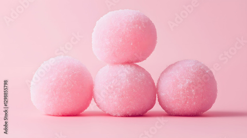 Sweet pink and white marshmallows and chocolate candies for a lovely treat on pink background.