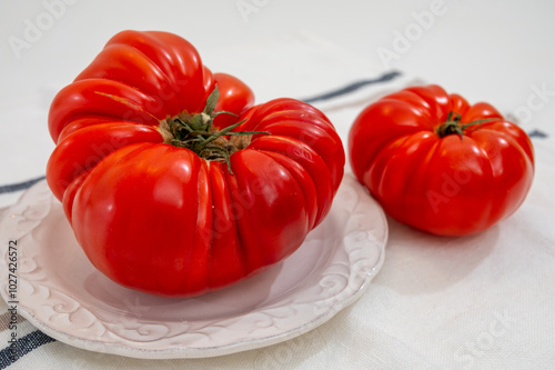 Sweet tasty ripe red french tomatoes from Brittany, France, salad seasonal vegetables