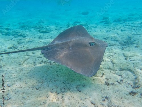 Swimming with sting rays in the waters of Bora Bora, island French Polynesia, South Pacific
