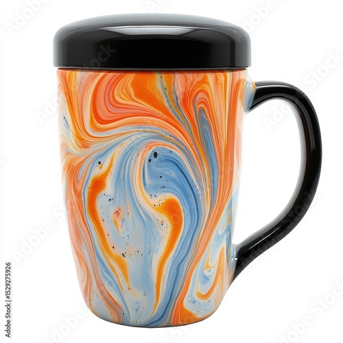 Swirl pattern tea infuser mug isolated on white background