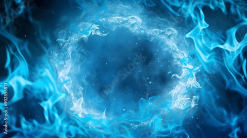 swirling flames, magic blue flames, anime style, blue flames flickering on top of water, marshland background