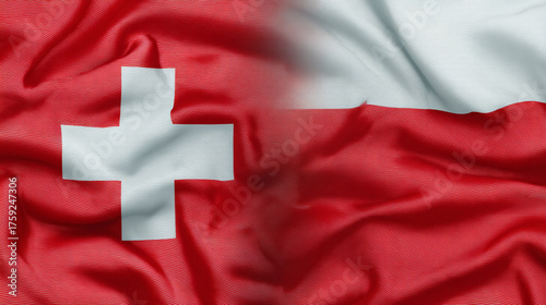 Switzerland and Poland Flags Merged Seamlessly for International Business, Travel, and Cultural Exchange Projects, Showing Unity and Collaboration in Red and White