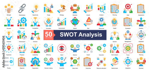 SWOT Analysis Icon Collection Set.Containing Strength, Weaknesses, Opportunity, Threat, Strategy, Business icon. Simple flat style Vector Illustration.