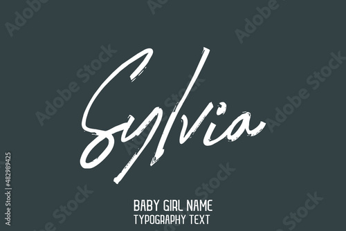Sylvia Baby Girl Name Handwritten Lettering Modern Typography on Grey Background