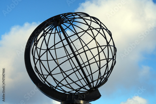 Symbol einer Weltkugel für das Ende der Welt am Nordkapp
