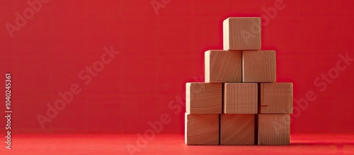 Symbol of career advancement conveyed through a message on wooden blocks against a red background featuring a copy space image