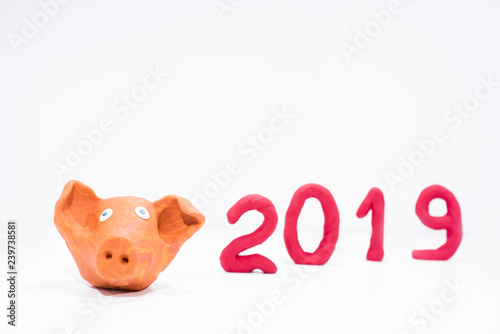 Symbol of Year 2019. Pig made from Play Clay.