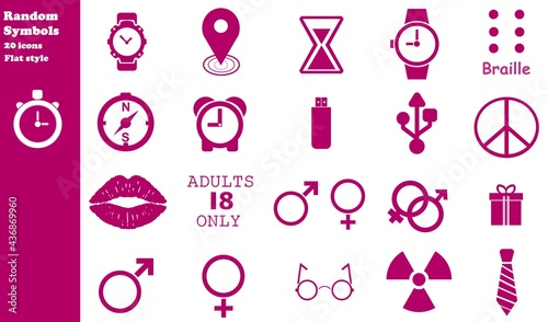Symboles divers en 20 icônes roses, collection