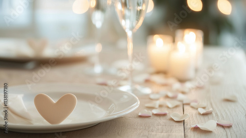 Table for Two with Heart-Shaped Plates and Candle Centerpiece