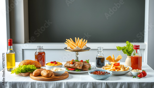 Table full of tasty food beautifully decorated isolated with white highlights, png