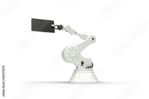 Tablet and robot against white background