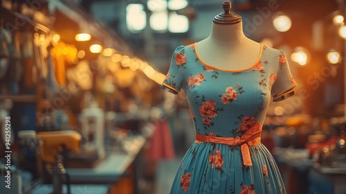 Tailor adjusting a mannequin with a new dress design