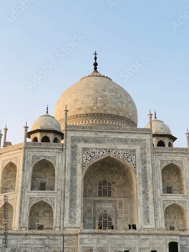 Taj Mahal in Agra, India. Taj Mahal, an ivory-white marble mausoleum on the bank of the yamuna river in the Indian city of Agra, Uttar Pradesh.