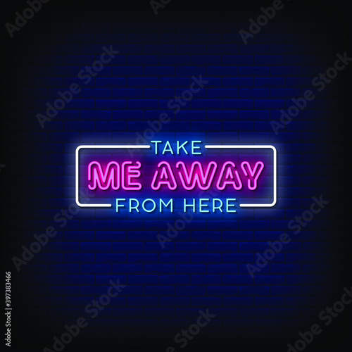 Take Me Away From Here Neon Signs Style Text Vector