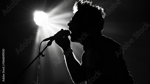 Talent Silhouette. Singer Performing in Shadowy Black Silhouette at Night Concert