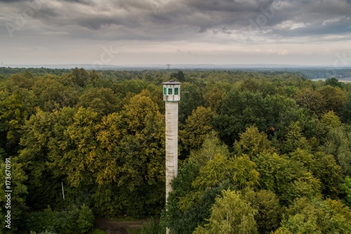 Tall watch tower in the forest.