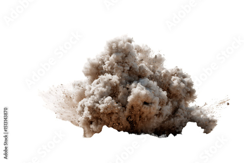 Tan Brown Dust Cloud Explosion Isolated on Transparent Background, PNG