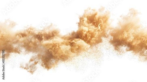 Tan cloud of sand blown on a white background