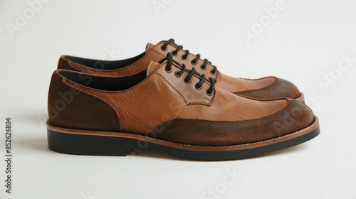 Tan Leather Brogue Shoes on White Background